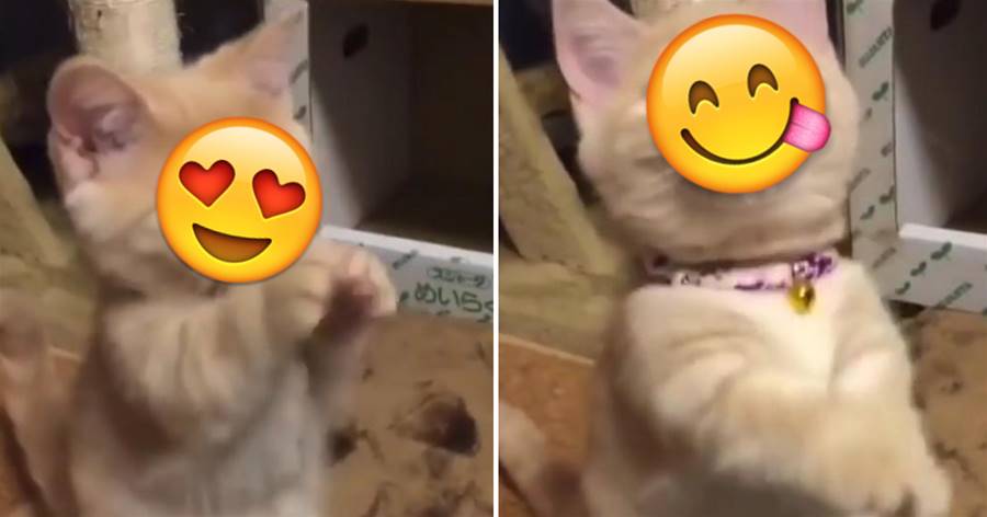 這只小貓雖然年紀不大,但卻很有靈性,知道該怎麼討好主人,怎麼才能得到自己喜歡的食物。